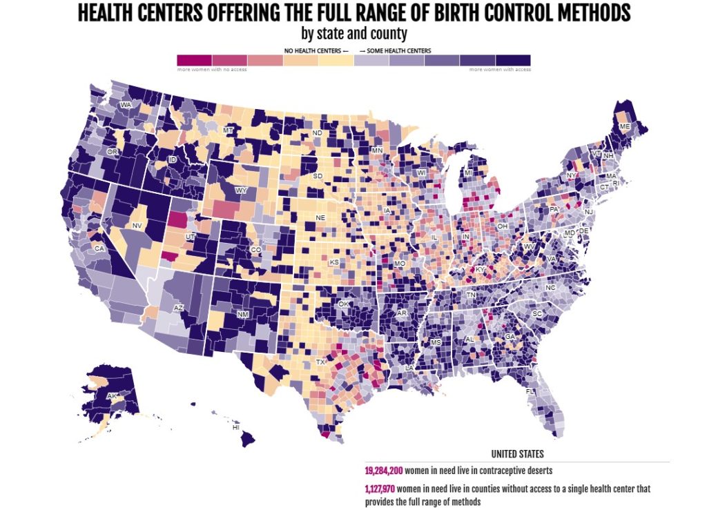Source- Power to Decide. To learn more, click on Contraceptive deserts and State contraceptive access.