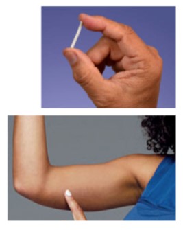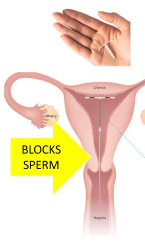 - Contraceptive mechanism: blocks sperm and prevents ovulation (variable) only